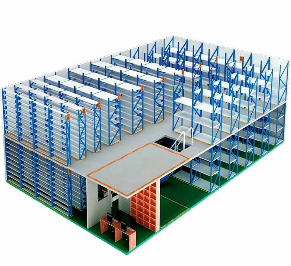 此類系統(tǒng),通常利用中型擱板式貨架或重型擱板式貨架作為主體和樓面板的支撐(根據(jù)單元貨架的總載重量來決定選用何種貨架),樓面板通常選用冷軋型鋼樓板、花紋鋼樓板或鋼格柵樓板。此類系統(tǒng)在汽車零部件領(lǐng)域、汽車4S店、輕工、電子等行業(yè)有較多應(yīng)用。