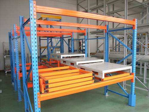推入式貨架又稱后推式貨架,是在前后梁間以多層臺(tái)車重疊相接,從外側(cè)將疊棧貨物置于臺(tái)車推入,后儲(chǔ)存之貨品會(huì)將原先貨品推往里面。充分利用空間,空間利用率比普通貨架提高3倍。地面滑軌穩(wěn)定流場(chǎng),并且有多種安裝方式。搖柄或者拖拉把手,特殊應(yīng)用可以選擇電動(dòng)。分為人力推動(dòng)(Manual Mobile Rack)、搖把驅(qū)動(dòng)式(Crank-type Mobile Rack)、電動(dòng)式(Electric Mobile Rack)。